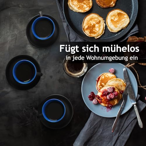 𝐄𝐈𝐍 𝐇𝐈𝐍𝐆𝐔𝐂𝐊𝐄𝐑 – Das MiaMio Espresso Set macht jeden Morgen zu einem besonderem. Das moderne, in einem matt- schwarz gehaltene Äußere gibt den Tassen einen edlen und hochwertigen Look. Mit ihrem glänzend-kräftigen Farbton im Inneren halten sie darüber hinaus eine schöne farbenfrohe Überraschung bereit.